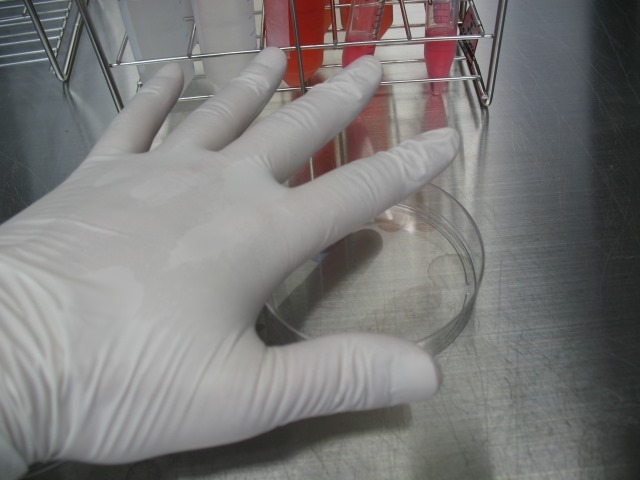 たとえクリーンベンチ内でも、容器の真上で手を動かすだけで微生物が落ちてしまうことがあります。