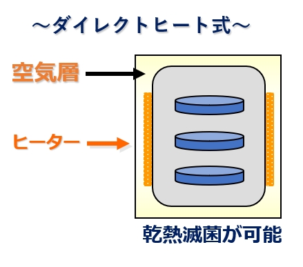 なお、この「乾熱滅菌」は、ダイレクトヒート型でしか行えない方法です。
