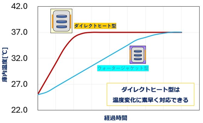 このタイプのインキュベーターは、庫内の温度上昇が早く、温度の均一性にも優れています。